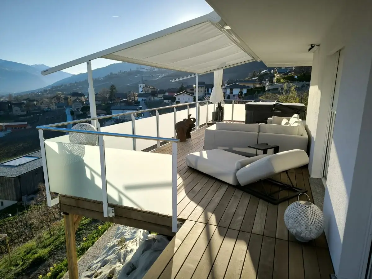 Verbundsicherheitsglas (VSG) nach Schweizer Norm. Wahlweise Klarglas oder foliertes Glas als Sichtschutz.