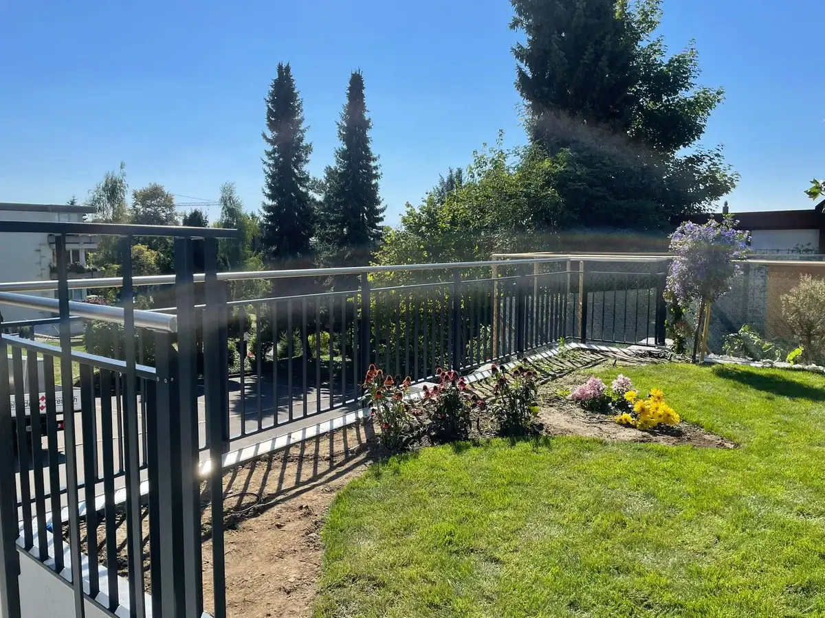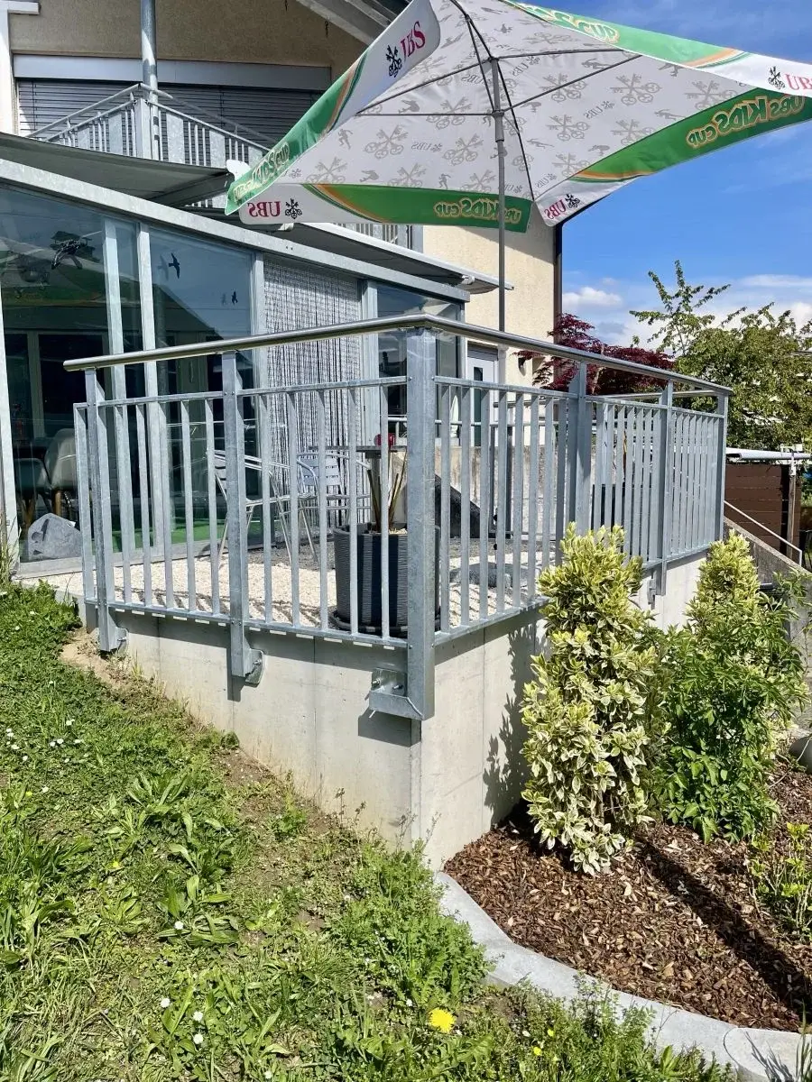 Massives Staketengeländer mit Edelstahlhandlauf in Top-Qualität.